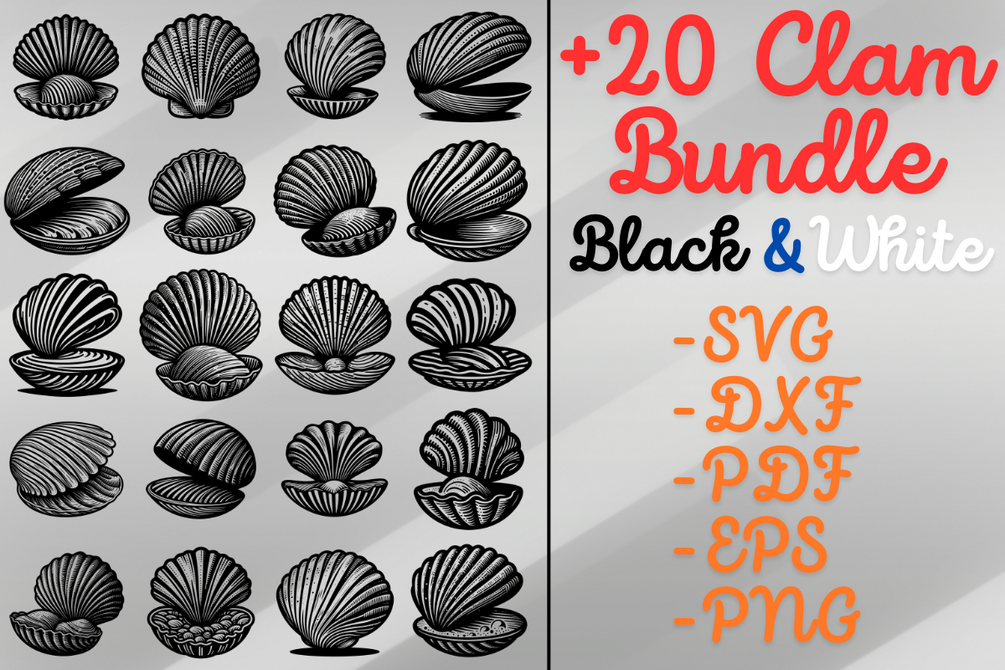 20 Clam Vectors SVG-DXF-PDF-EPS-PNG Bundle